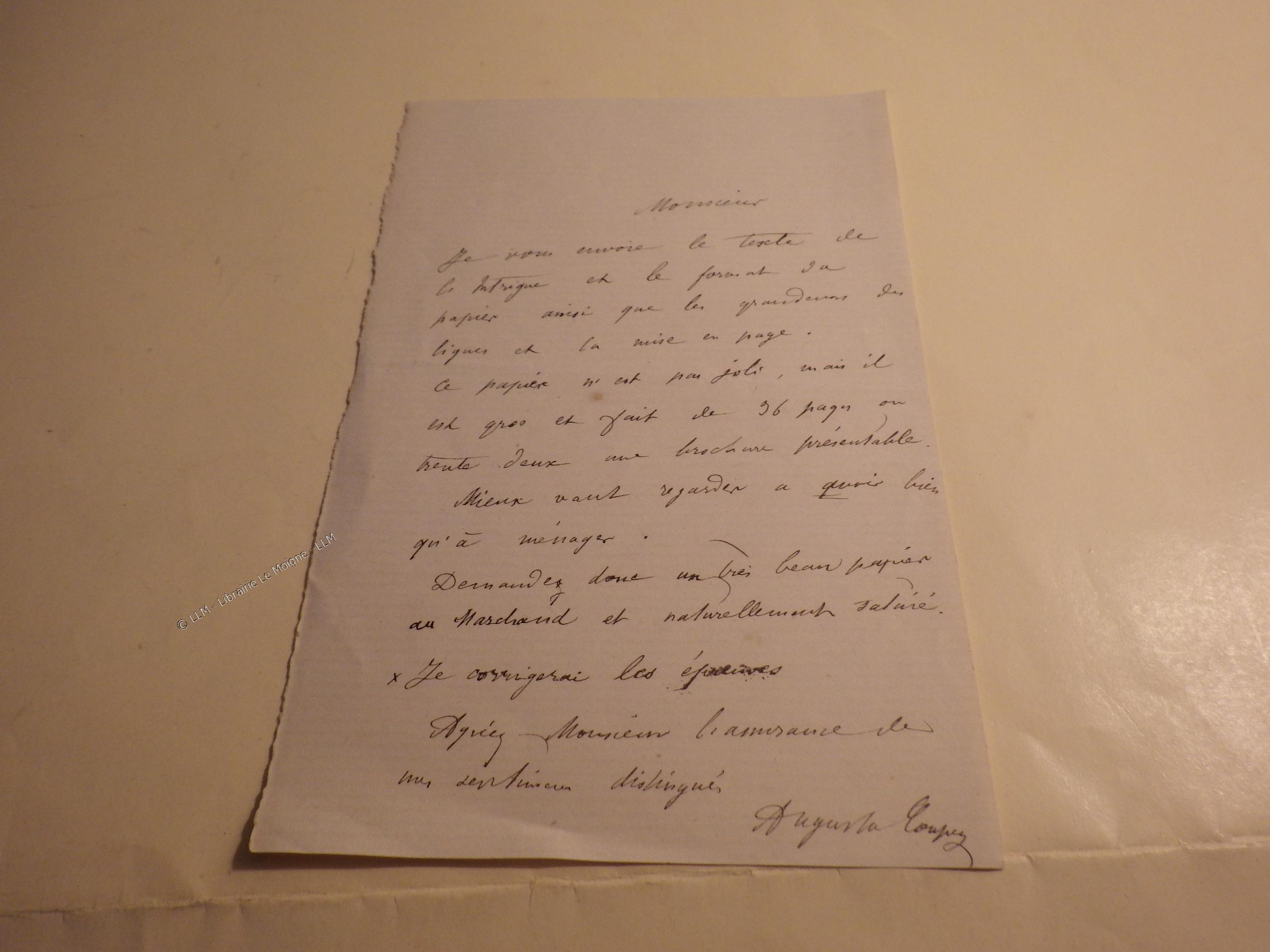 Collation:Vers 1870.Au sujet de publications. Bon état .11/16,5cm. auto-84