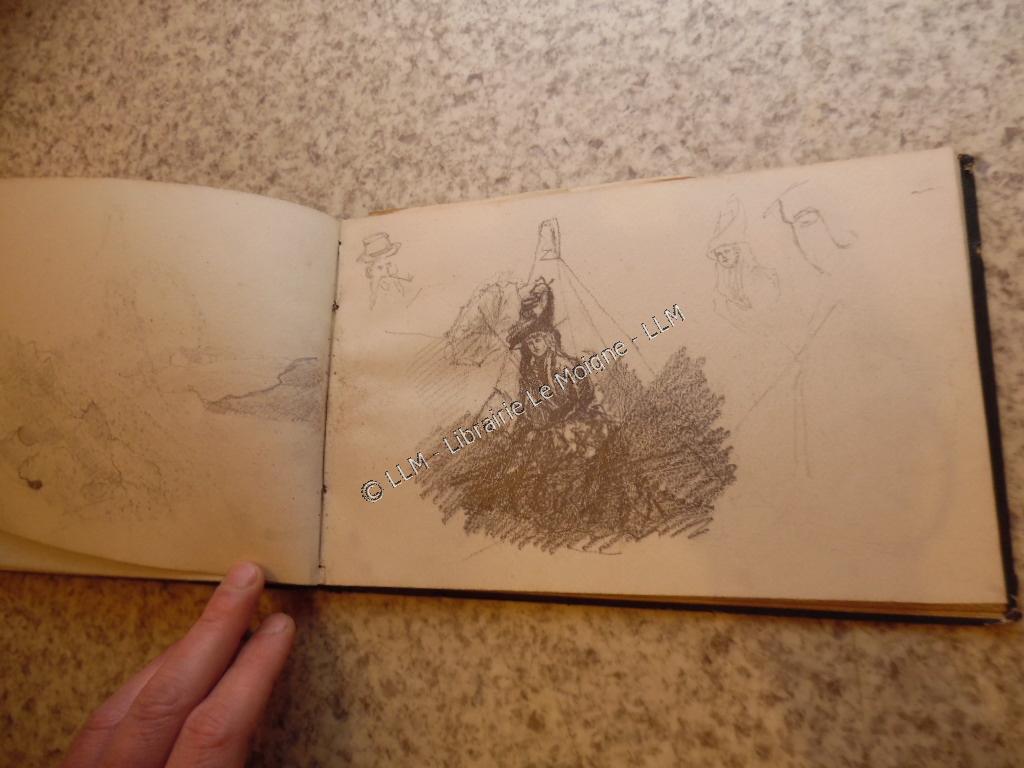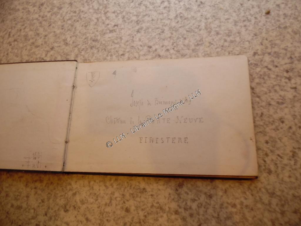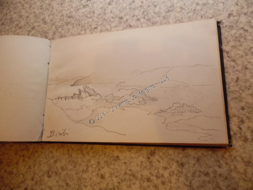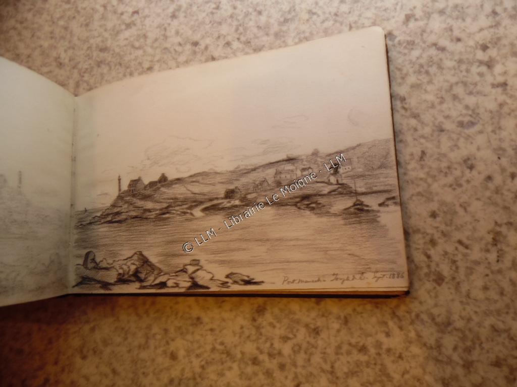 Collation:Carnet de dessins de Joseph de Brémond d'Ars (Anatole), vers 1886.21 feuilles avec dessins + qques feuilles vierges in fine.Notamment : Port-Manech, Poul-fanc La Porte-Neuve, Concarneau, Lanniguy , Biribi (?), chateau de Madame Pierre Le Du. Voir tous les dessins en photos ci-dessous.