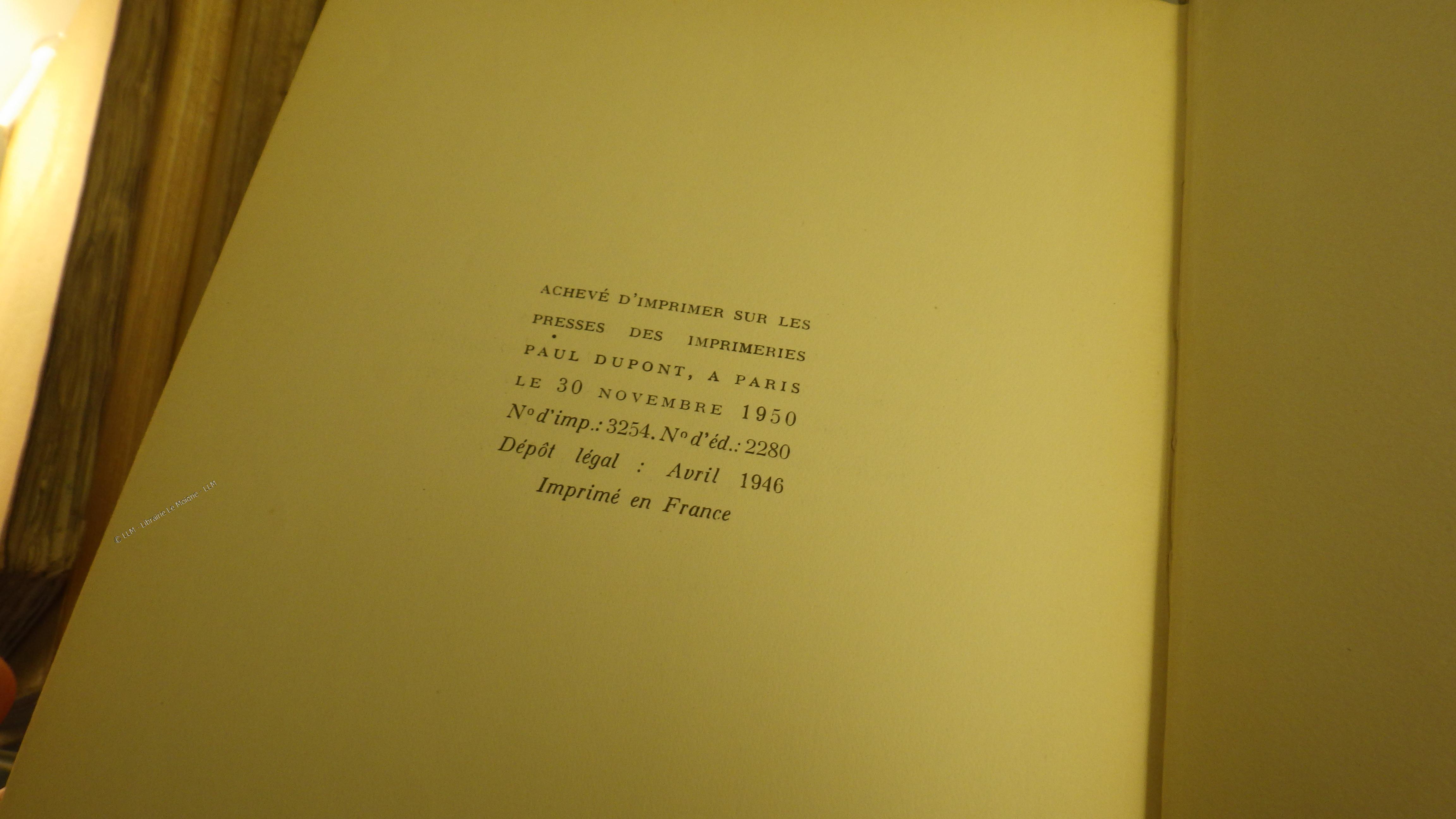 Reliure:Reliure cartonnée de l'éditeur (Paul Bonet), jaquette. Bon état . Une petite mouillure à la jaquette (voir photo).