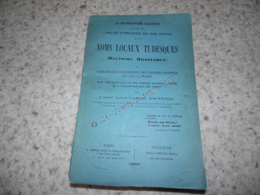 1885.Noms locaux tudesques.Dictionnaire allemand.Fabre d'Envieu / 60 €