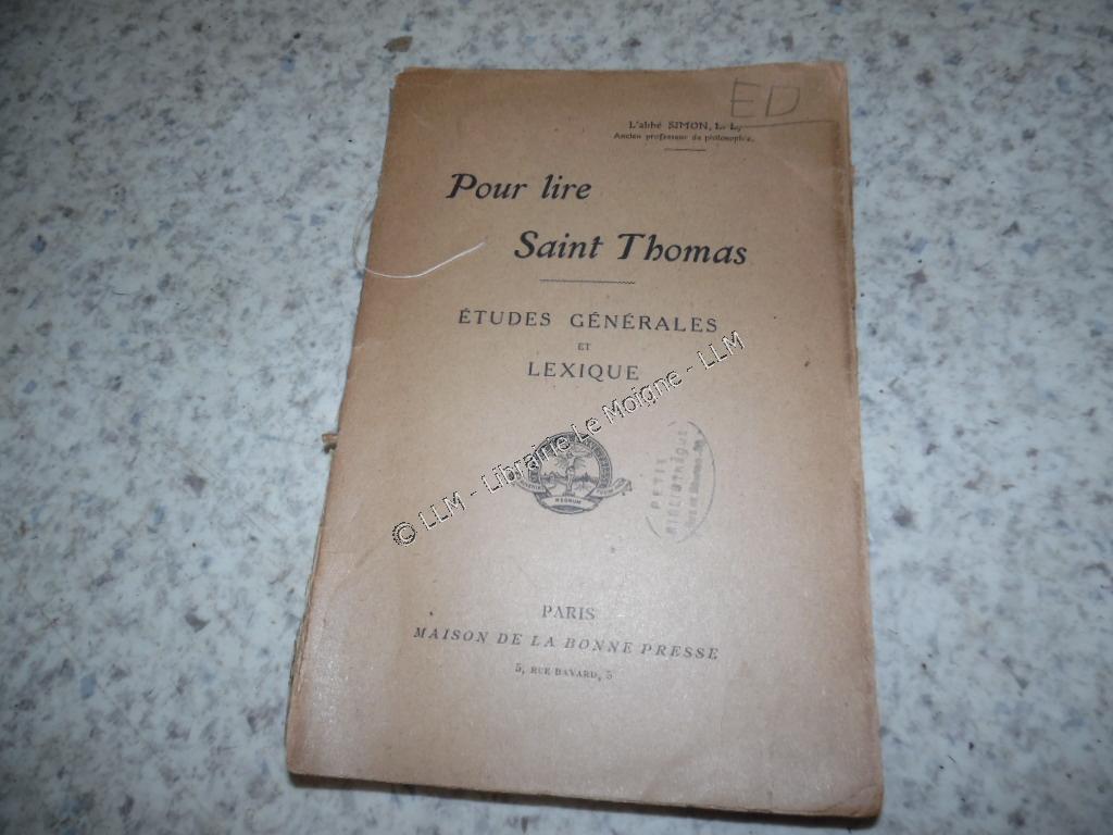 1915.Pour lire Saint Thomas.Etudes générales et lexique.abbé Simon / 20 €