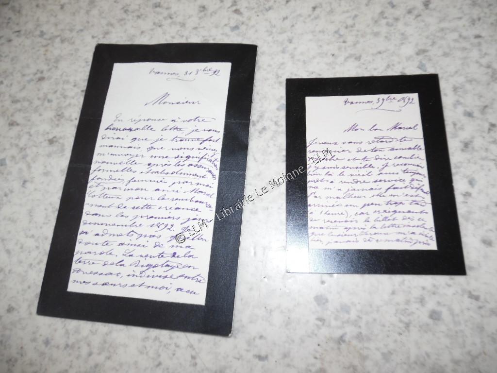 1892.Deux lettres autographe.Bretagne Vannes.Marquis de L'Estourbeillon / 60 €