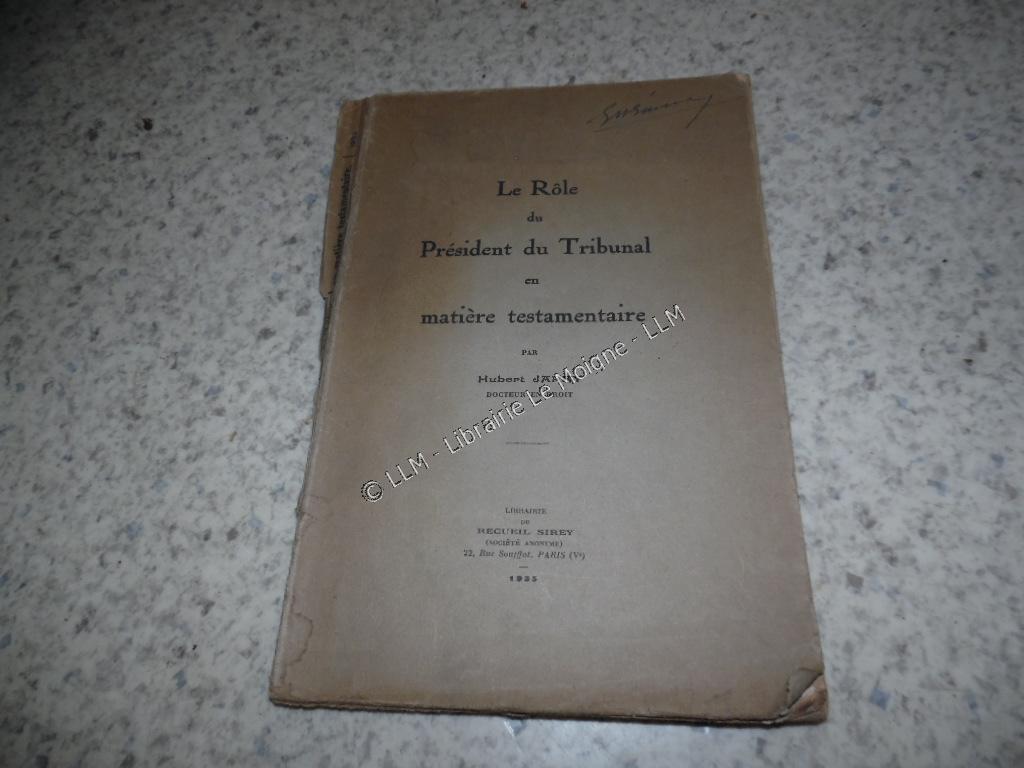 1935.Rôle président tribunal en matière testamentaire.Hubert Jarry / 22 €